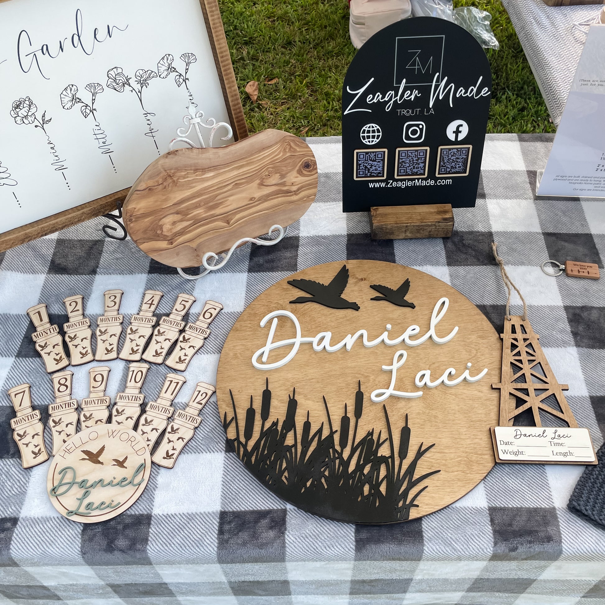 These round signs can be customized for any occasion! Send us an email to start on your custom design : zeaglermade@gmail.com